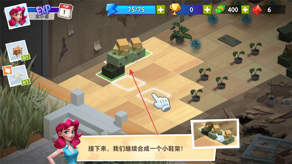 3、繼續(xù)合并對應物品,合成出小鞋架,推進物品升級流程。