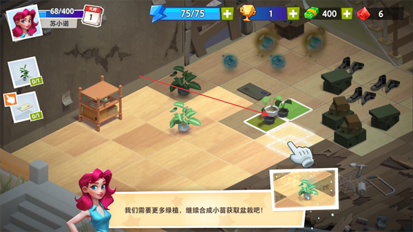4、合并多個綠植,合成小盆栽獲取收益,持續(xù)升級物品解鎖更多內容。