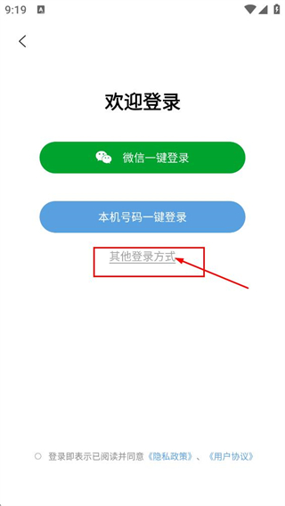3、在歡迎登錄界面,點(diǎn)擊其他登錄方式選項(xiàng),切換至賬號(hào)密碼登錄頁(yè)。