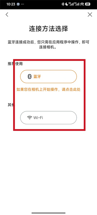 4、選擇相機(jī)后,挑選藍(lán)牙或WiFi等連接方式,完成配對(duì)連接,之后即可使用。