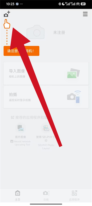 2、在主頁點(diǎn)擊左上角的相機(jī)注冊(cè)入口,進(jìn)入相機(jī)注冊(cè)。
