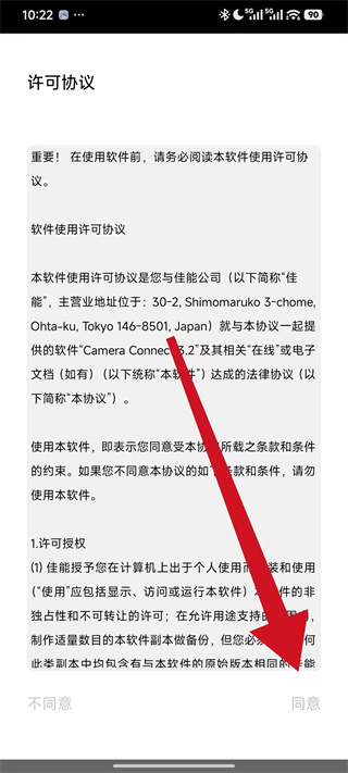 1、打開Canon Camera Connect,在許可協(xié)議頁面點(diǎn)擊右下角的同意,進(jìn)入應(yīng)用主頁。