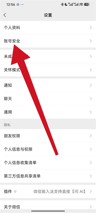 3、進(jìn)入設(shè)置頁面后,選擇賬號(hào)安全。