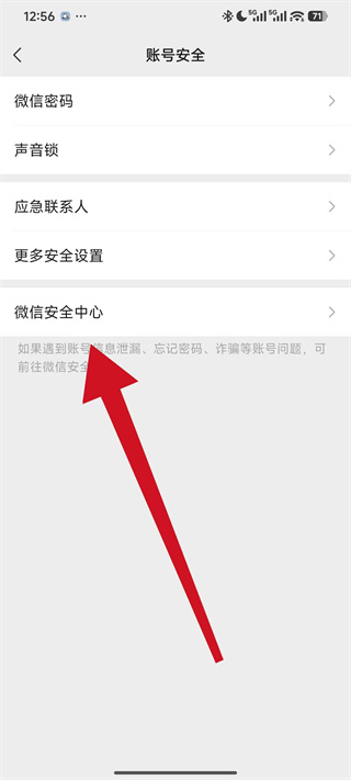 4、進(jìn)入賬號(hào)安全頁面后,點(diǎn)擊微信安全中心。