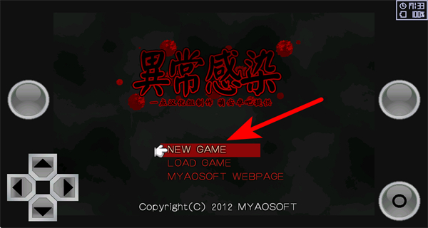 1、進(jìn)入游戲啟動界面后,點(diǎn)擊NEW GAME選項(xiàng)進(jìn)入游戲,這是開啟異常感染冒險(xiǎn)的關(guān)鍵操作,進(jìn)入后續(xù)場景。