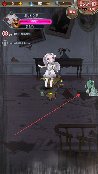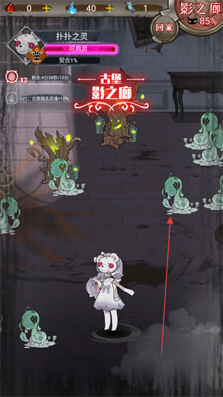 1、進(jìn)入古堡影之廊關(guān)卡,操控角色在場景中移動,準(zhǔn)備與怪物互動。