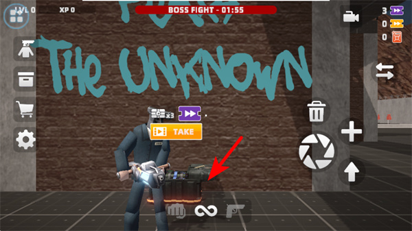 1、在BOSS戰(zhàn)場景中,當(dāng)界面出現(xiàn)TAKE提示時點擊對應(yīng)區(qū)域,這是獲取戰(zhàn)斗道具的關(guān)鍵操作,獲取后道具會裝備到角色身上,提升戰(zhàn)斗時輸出能力。