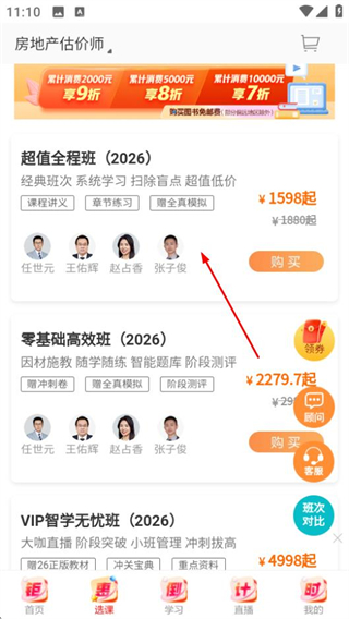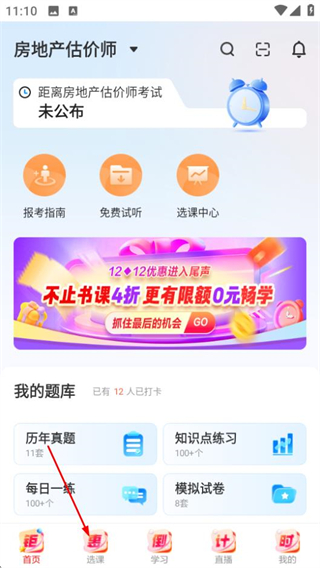 1、在正保職業(yè)教育首頁(yè),點(diǎn)擊底部的選課選項(xiàng),進(jìn)入選課頁(yè)面。