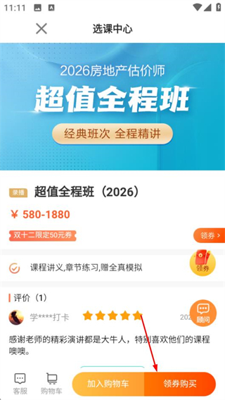 3、在課程詳情頁(yè),點(diǎn)擊領(lǐng)券購(gòu)買按鈕,觸發(fā)登錄頁(yè)面跳轉(zhuǎn)。