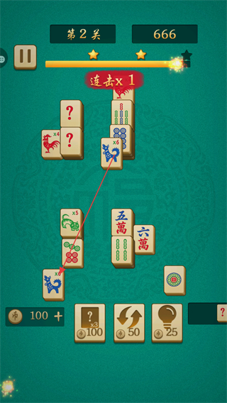 3、持續(xù)消除相同牌,分數(shù)快速提升至666,靠近通關條件。