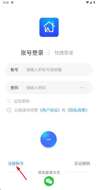 1、在登錄頁面點擊注冊賬號選項,進入注冊賬號頁面。