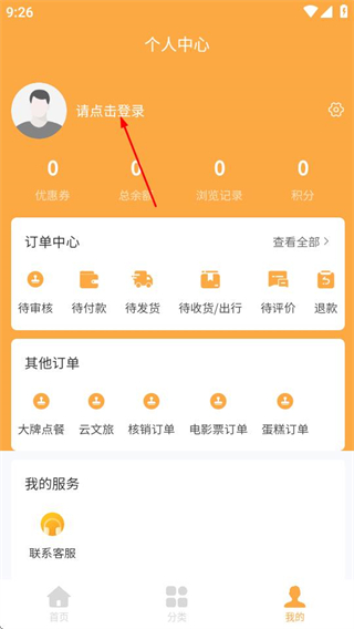 2、在個人中心頁面,點擊請點擊登錄選項,進入登錄頁面。