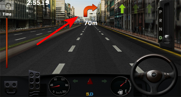 2、駕駛過程中,關(guān)注界面上方的路線箭頭提示,提前調(diào)整車輛方向,這是跟隨賽道路線的核心操作,避免偏離路徑。