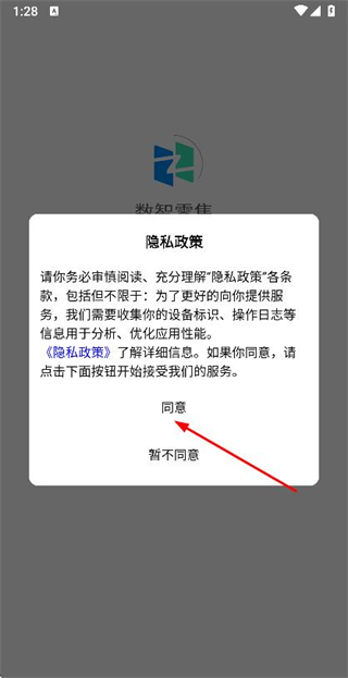 1、在使用協(xié)議隱私政策彈窗中點(diǎn)擊同意按鈕,進(jìn)入登錄頁(yè)面。