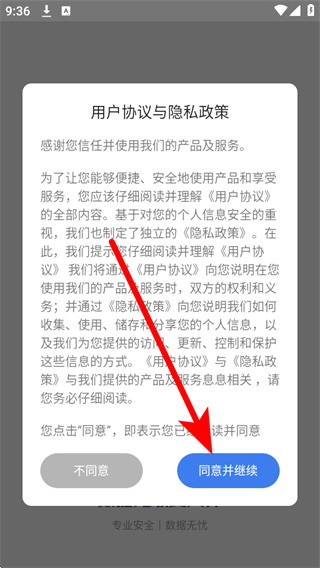 1、打開(kāi)數(shù)據(jù)兔,在彈窗中點(diǎn)擊同意并繼續(xù),進(jìn)入應(yīng)用首頁(yè)。