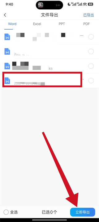 3、在文件列表中勾選想要導(dǎo)出的目標(biāo)文件,點(diǎn)擊頁(yè)面底部的立即導(dǎo)出。