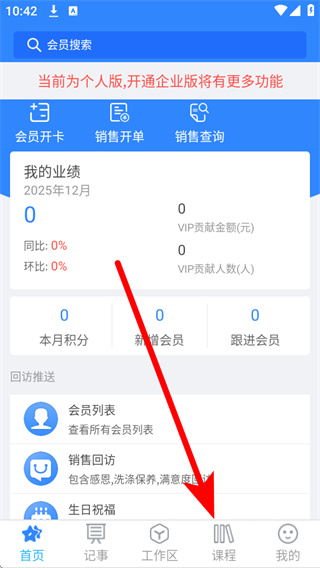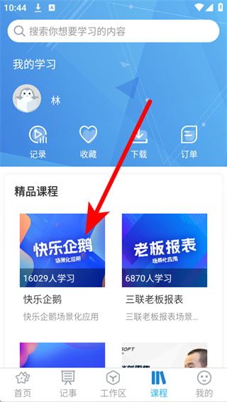2、在首頁底部點(diǎn)擊課程,進(jìn)入課程頁面。
