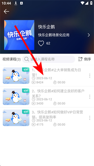 4、在課程詳情頁中,選擇具體的視頻課程,即可開始學(xué)習(xí)使用。