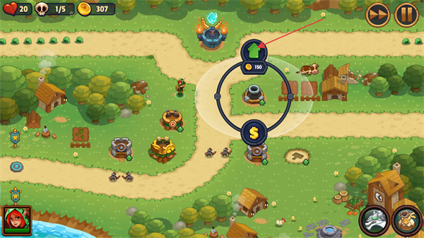3、在該關(guān)卡場(chǎng)景中,防御塔帶有向上箭頭及數(shù)值150的圖標(biāo)可點(diǎn)擊,進(jìn)行對(duì)應(yīng)資源的升級(jí)操作,以此提升防御塔攻擊力等屬性推進(jìn)關(guān)卡進(jìn)度。