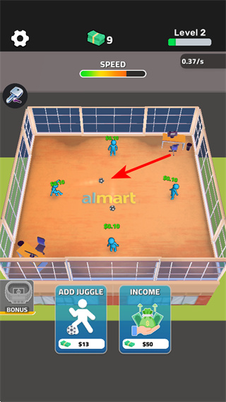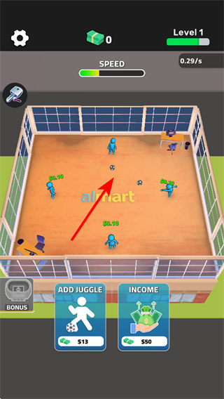 3、觀察場景內(nèi)的顛球節(jié)奏,這是維持資源收益的核心操作,確保角色持續(xù)顛球可穩(wěn)定積累資源,助力關卡進度提升。
