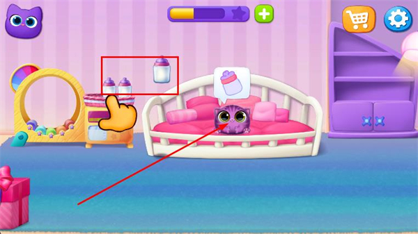 2、觀察貓咪需求,拖動(dòng)對(duì)應(yīng)道具投喂貓咪,滿足貓咪的進(jìn)食需求。