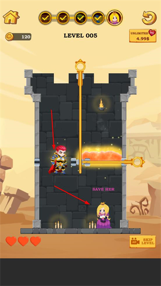 英雄救援安卓版是一款卡通風(fēng)格的冒險解謎類游戲,以解救公主、尋找寶藏為核心目標(biāo),打造充滿挑戰(zhàn)與機遇的冒險世界,采用明快色彩與詼諧角色設(shè)計,搭配從森林到城堡的多元場景,帶來舒適視覺體驗,操作以拉銷釘為核心,通過簡單觸控規(guī)劃路徑,避開陷阱與敵人,用智慧克服冒險中的坎坷,在解謎過程中感受探索的樂趣與成就感。