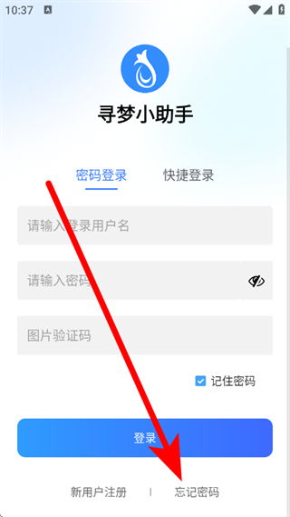 1、打開尋夢(mèng)鮮花,在登錄頁面,點(diǎn)擊忘記密碼,進(jìn)入重置密碼頁面。