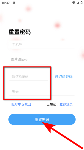 3、輸入短信驗(yàn)證碼并設(shè)置新的密碼,點(diǎn)擊重置密碼,完成密碼重置。