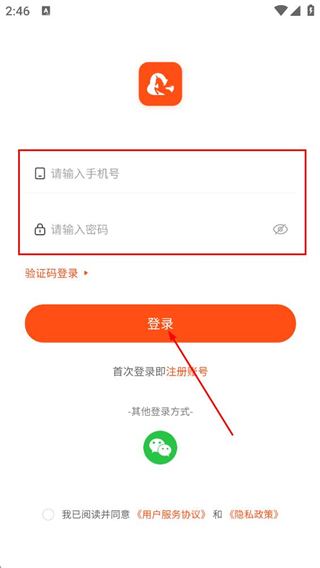 4、在賬號密碼登錄頁面,填寫手機號和密碼,點擊登錄,完成賬號登錄。