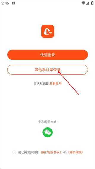 3、在登錄選擇頁面,點擊其他手機號登錄選項,進入賬號密碼登錄頁面。