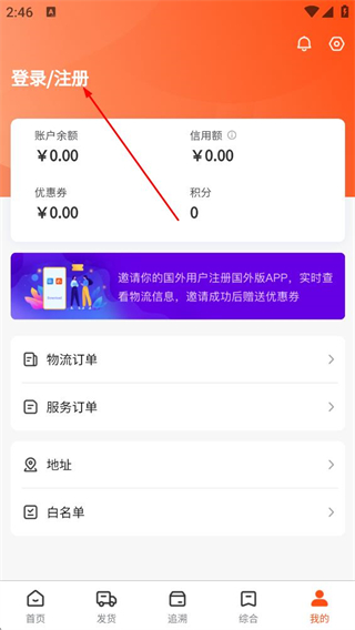2、在個人頁面中,點擊登錄/注冊的按鈕,進入登錄選擇頁面。