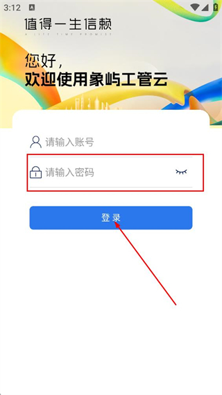 3、在登錄頁面,繼續(xù)填寫密碼,點擊登錄完成象嶼工管云的賬號登錄。