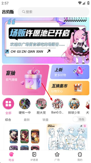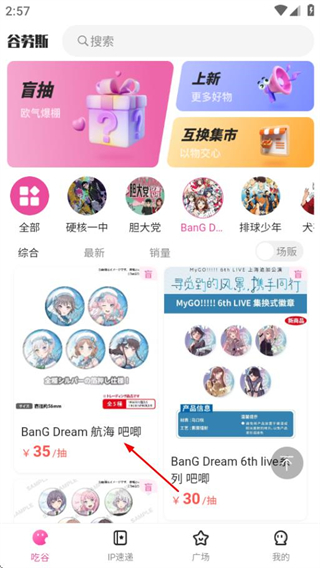 1、在谷勞斯首頁,點擊目標IP分類,進入對應IP的商品頁面。