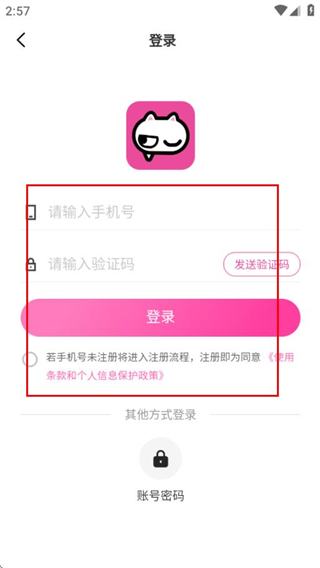 4、在登錄頁面,完成賬號登錄,即可使用互換集市吃谷。