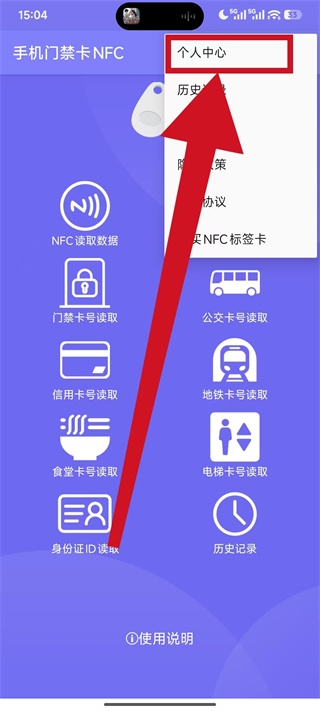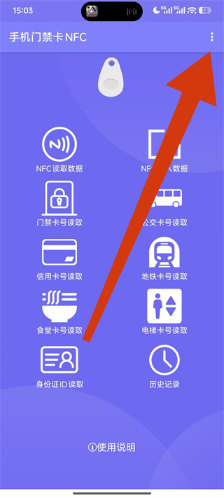 1、打開掌上NFC門禁卡,點(diǎn)擊頁面右上角的更多,展開操作菜單。