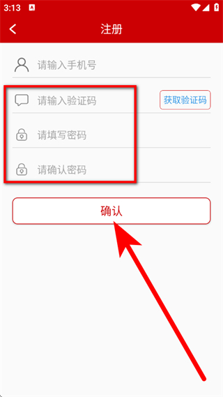 5、輸入驗(yàn)證碼、設(shè)置密碼,點(diǎn)擊確認(rèn),完成賬號(hào)注冊(cè)操作。
