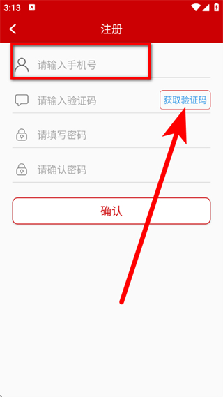 4、在注冊(cè)頁(yè)面,輸入手機(jī)號(hào),點(diǎn)擊獲取驗(yàn)證碼。