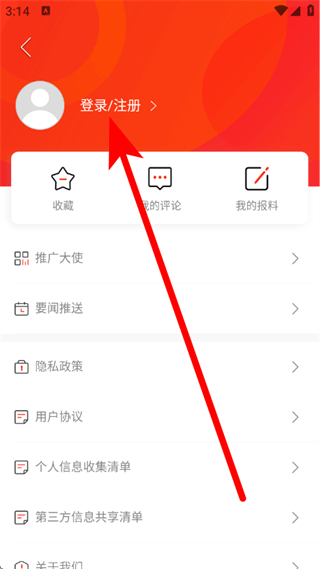 2、在個(gè)人頁(yè)面,點(diǎn)擊登錄注冊(cè),進(jìn)入登錄頁(yè)面。