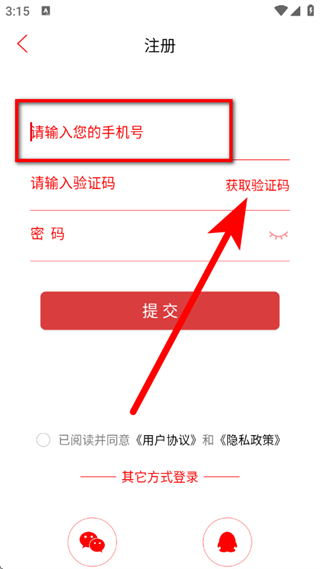 4、在注冊(cè)頁(yè)面,輸入您的手機(jī)號(hào),點(diǎn)擊獲取驗(yàn)證碼。