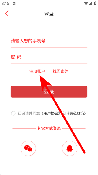 3、在登錄頁(yè)面,點(diǎn)擊注冊(cè)賬戶,進(jìn)入注冊(cè)頁(yè)面。