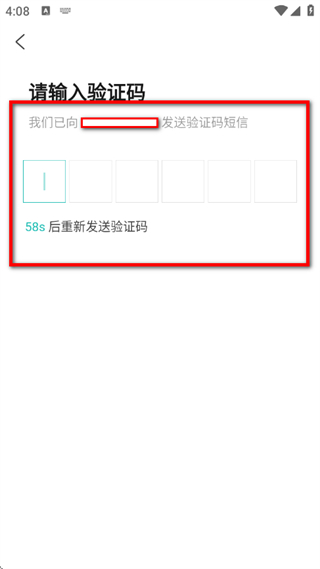5、在請(qǐng)輸入驗(yàn)證碼頁(yè)面,輸入驗(yàn)證碼,完成注冊(cè)登錄。