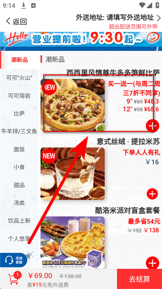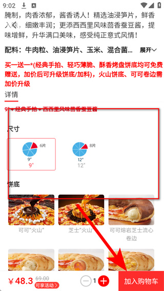 2、在商品列表中,選擇目標(biāo)比薩,點(diǎn)擊進(jìn)入該商品的詳情頁面。