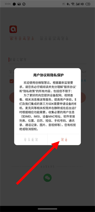 1、打開創(chuàng)維智慧云攝像頭,在彈出提示框,點(diǎn)擊同意,進(jìn)入登錄頁(yè)面。