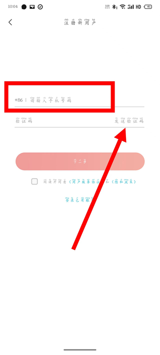 3、在注冊(cè)頁(yè)面,輸入手機(jī)號(hào)碼,點(diǎn)擊發(fā)送驗(yàn)證碼。