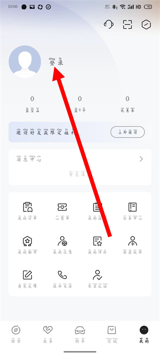 2、在個人頁面,點(diǎn)擊登錄,進(jìn)入手機(jī)號登錄頁面。