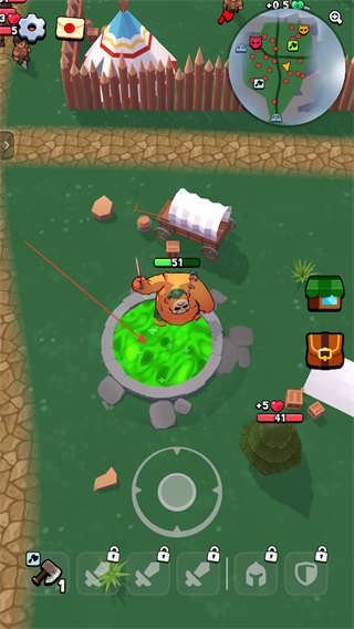 1、操控屠夫沿路徑前進(jìn),擊碎障礙門,收集道具,積累屬性,推進(jìn)至目標(biāo)區(qū)域。