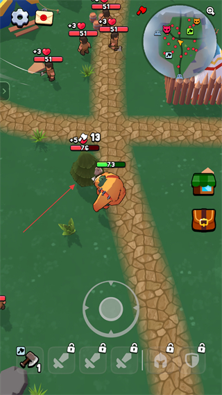 4、沿交叉路徑前進(jìn),攻擊敵人獲取生命等加成,保持戰(zhàn)力,向地圖目標(biāo)點(diǎn)推進(jìn)。