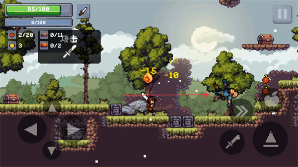 1、操控角色移動,攻擊場景中的怪物,獲取蘋果類道具。
