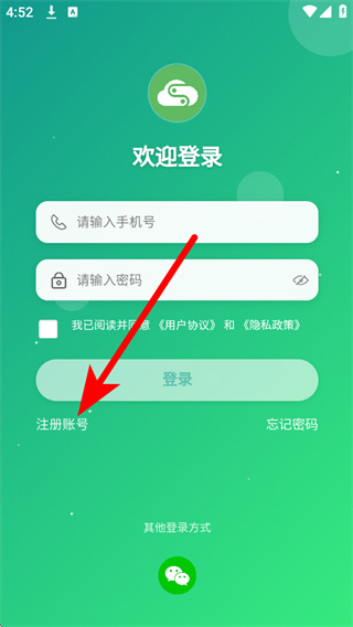 3、在登錄頁面,點擊注冊賬號,進(jìn)入注冊賬號頁面。