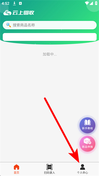 1、打開云上回收,在首頁底部導(dǎo)航欄點擊個人中心,進(jìn)入個人中心頁面。